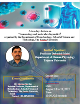 The Department of Biotechnology successfully organized a two-day online lecture series on “Immunology and Molecular Diagnostics” from 18th to 19th August 2025. The key speaker of this event was Prof. Debasish Maiti, a distinguished academician from Tripura University and expert in the field of Immunology.